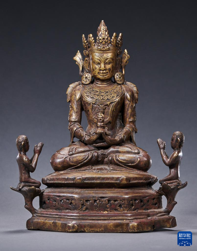明末清初黃銅同侍從無量壽佛造像(資料照片)。新華社發(fā)