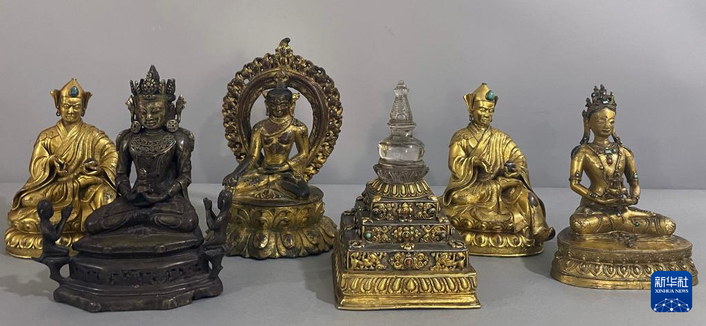 銅鎏金水晶嵌寶石供養(yǎng)塔(資料照片)。記者從9月26日召開的全國文物援藏工作電視電話會議上獲悉,國家文物局將從美國成功追索回國的12件文物藝術(shù)品整體劃撥西藏博物館。新華社發(fā)