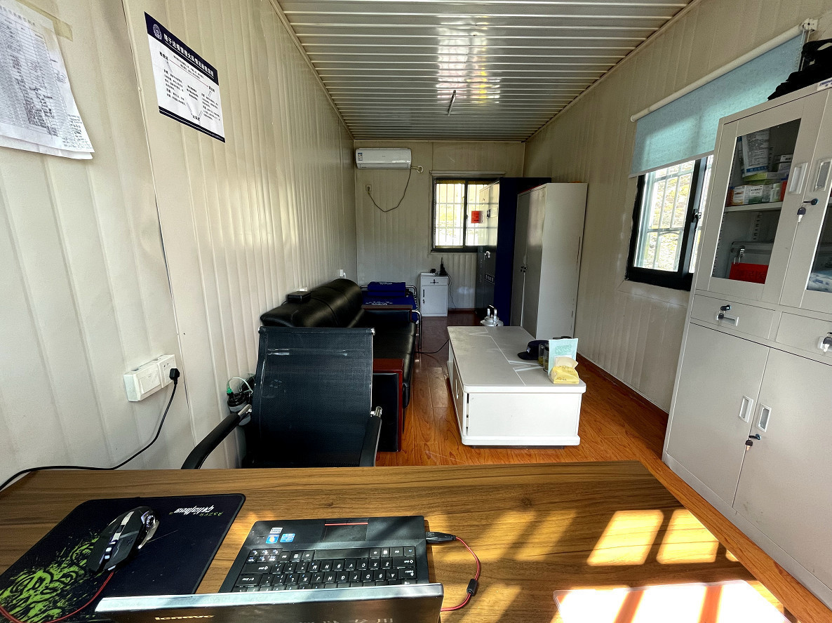 “最開始,我們是住在旁邊那個鐵皮房子里,晚上睡覺時還漏風,取暖基本靠“抖”,睡在被窩里縮成一團,直到睡熱了之后才能把身子伸直。在這里執(zhí)勤就沒有脫下過毛衣,哪怕是在有太陽的白天,換衣服要等到回到駐地換勤以后。后來支隊為我們修建了這個過渡性的移動方艙,空調、烤火爐、熱水器、室內廁所、冰箱、沙發(fā)等設備都有了,只要把門關好了,取暖器和空調一開,室內就像家里那么暖和。說實話,這條件的跟之前比,就是鳥槍換炮”。周建馳繼續(xù)補充到。