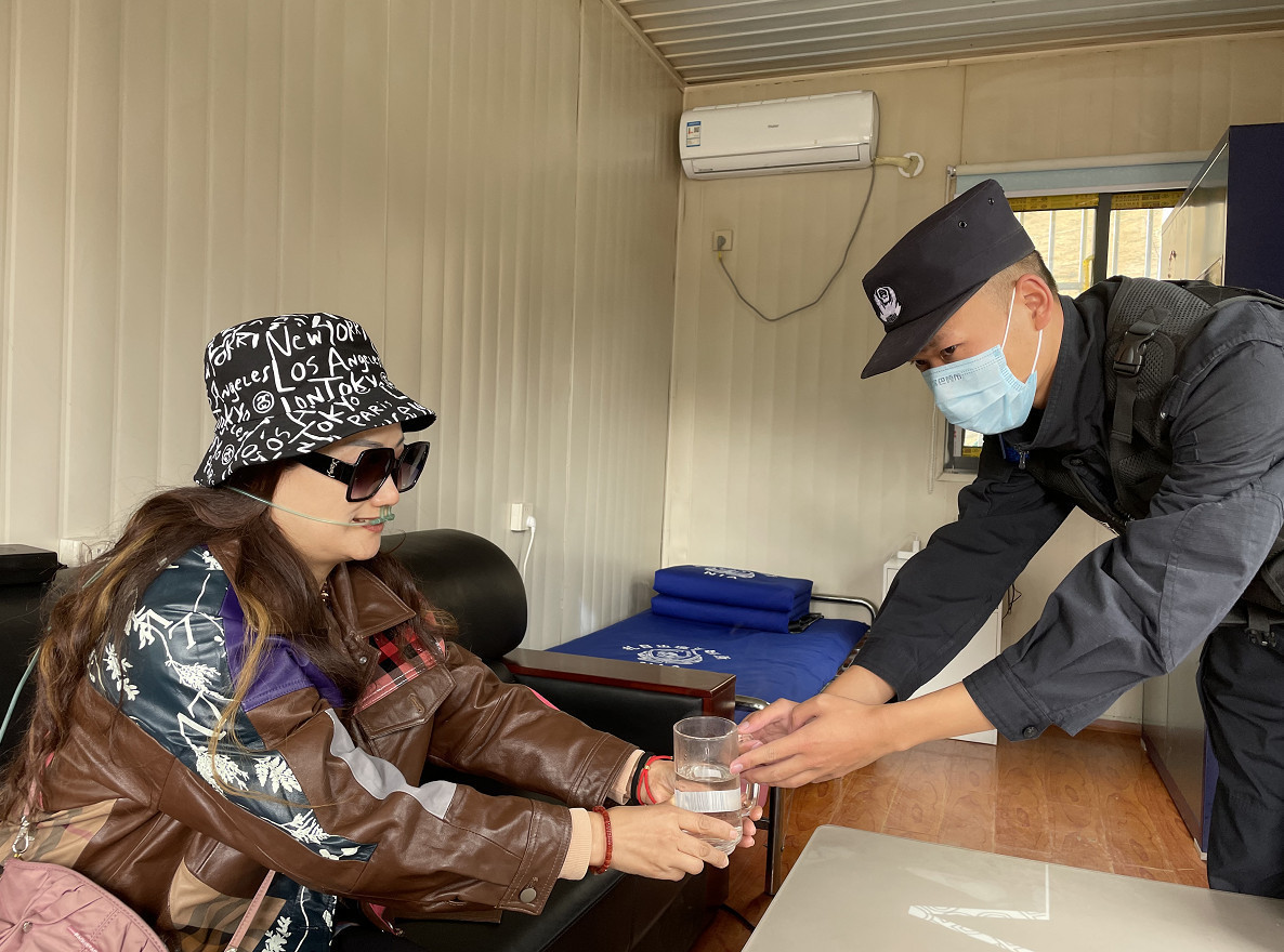 檢查站民警除了檢查出入邊境管理區(qū)人員和車輛以外,還設置了綠色便民服務區(qū),專門為長途駕駛的游客提供飲用熱水和一些應對高原反應的藥品,以及為有吸氧需求的游客提供便攜式制氧機。據(jù)不完全統(tǒng)計,自上點開展工作兩年以來,曲桑邊境檢查站共計為游客提供物資藥品幫助240余人次,幫助救援被困游客50余人,獲得了過往群眾游客的一致好評。
