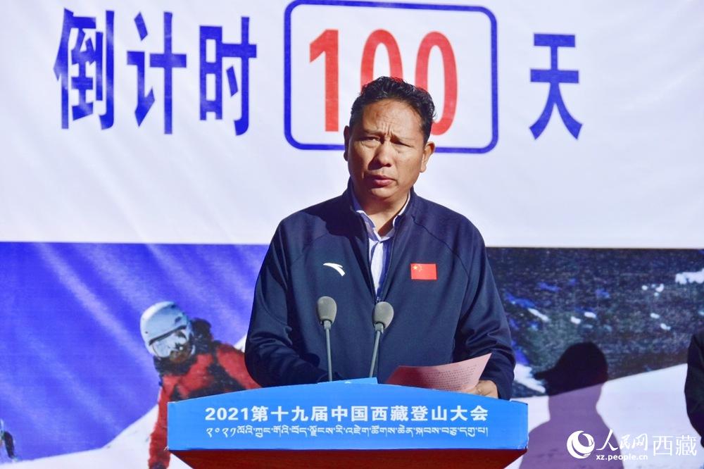 西藏自治區(qū)體育局局長(zhǎng)尼瑪次仁致辭。人民網(wǎng) 李海霞攝