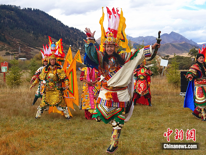 圖為10月19日,西藏自治區(qū)昌都市類(lèi)烏齊縣,吉美德青表演嶺卓舞。 中新社記者 冉文娟 攝