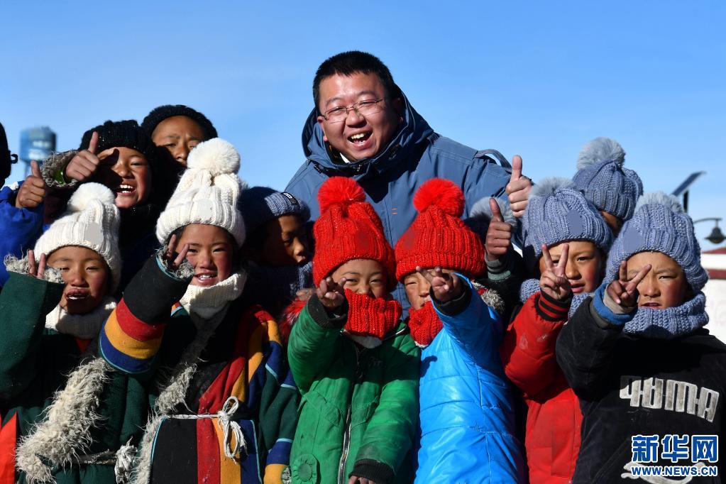 援藏教師潘杰和藏族學生在一起(12月12日攝)。