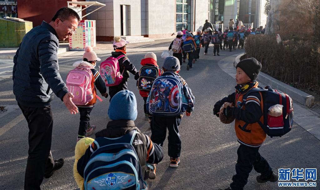 援藏教師潘杰送學生放學(12月9日攝)。