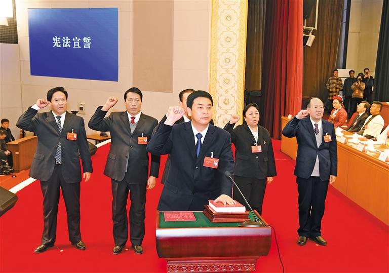 根據(jù)《全國人民代表大會常務(wù)委員會關(guān)于實行憲法宣誓制度的決定》及《西藏自治區(qū)實施憲法宣誓制度辦法》,7日上午,自治區(qū)十一屆人大五次會議舉行憲法宣誓儀式。