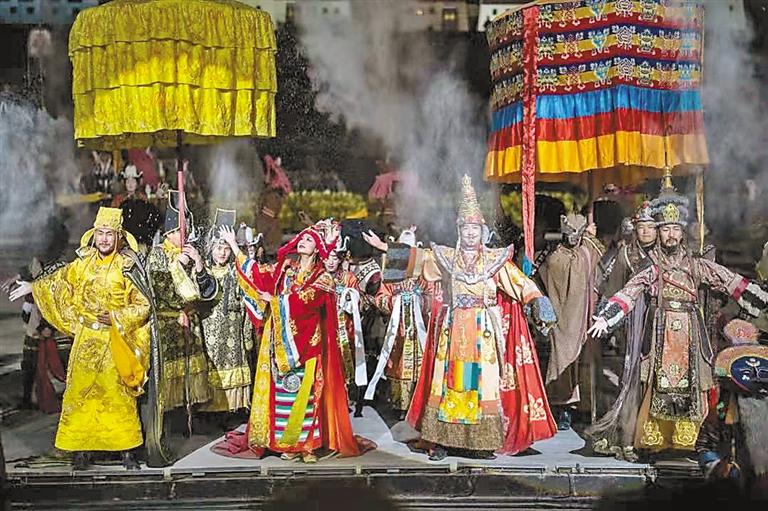 值得一提的是,為了努力應對疫情持續(xù)帶來的不利影響,《文成公主》實景劇積極試水“云演藝”,舉辦了多場以“足不出戶·云看文成”為主題的線上觀劇活動,各平臺總觀看量數(shù)十萬人次,有力助推了西藏非遺文化與民俗文化的傳承與傳播。