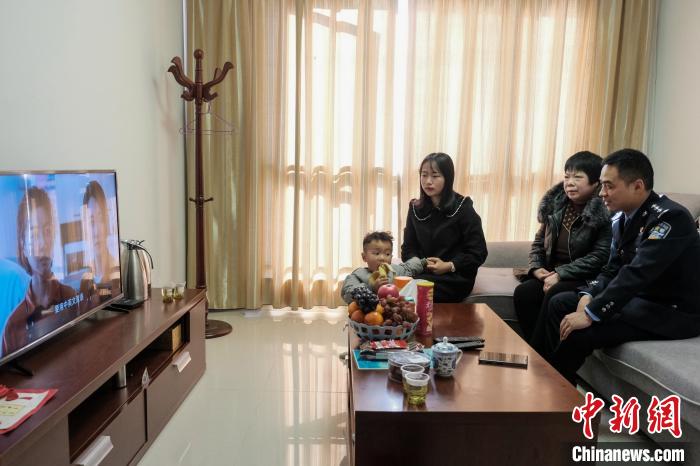圖為戍邊民警羅永超和家人一起看電視。 江飛波 攝