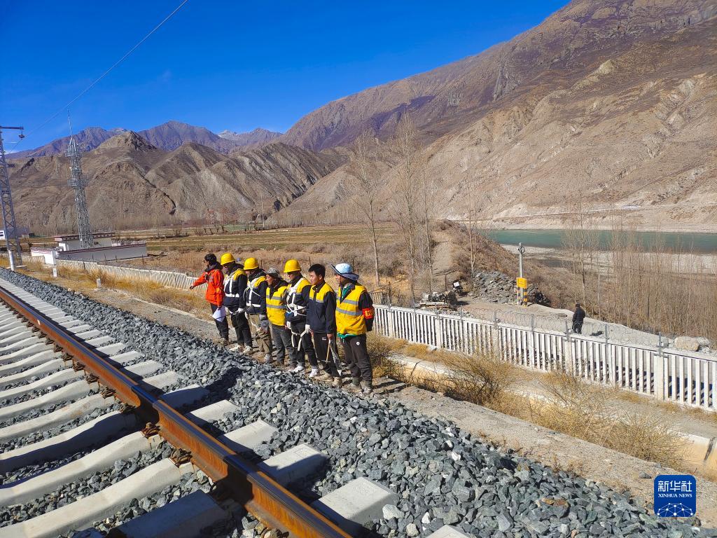 冬日暖陽下的雅魯藏布江河谷靜謐安詳,深峽江流澄碧蜿蜒,復興號在拉林鐵路上疾馳而過?;疖噺乃淼览锎┻^,急促的哨音吹響,加查橋隧工區(qū)工長仁青次仁和工友們開始每天例行的橋隧設備養(yǎng)護工作。