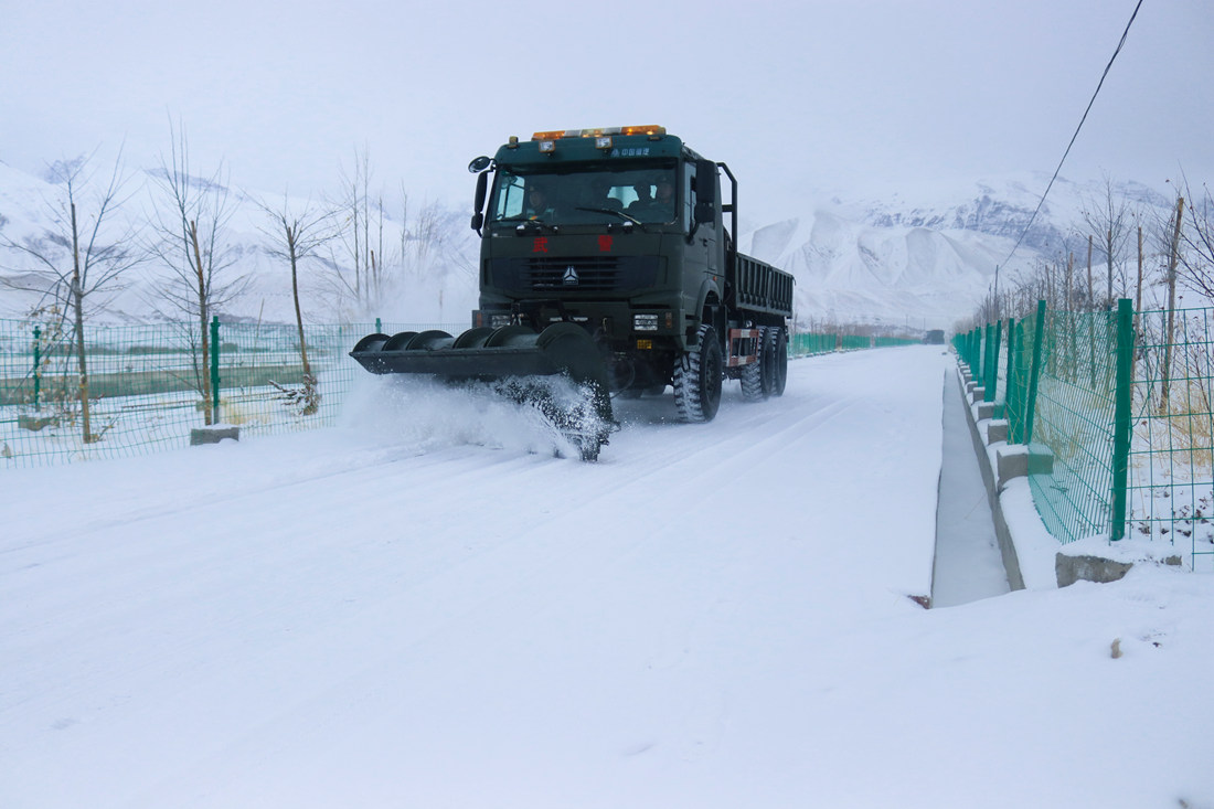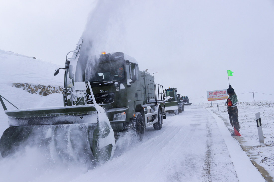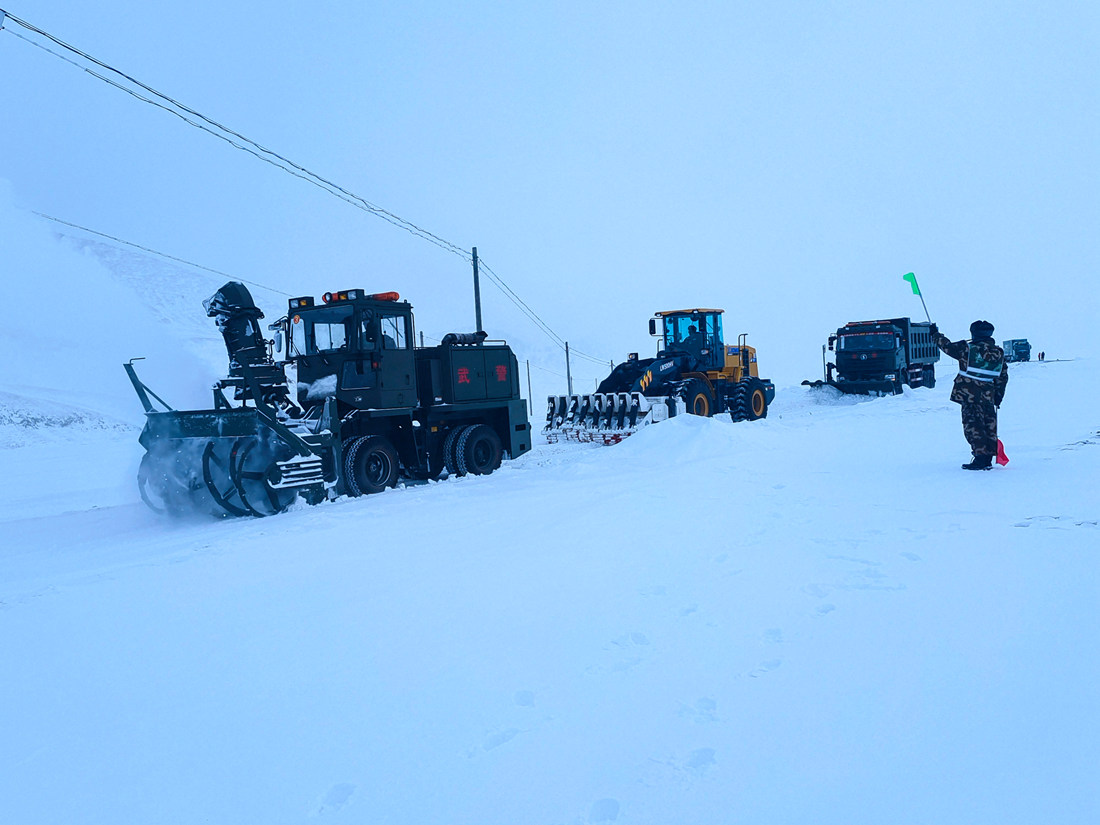 因?yàn)?zāi)害現(xiàn)場(chǎng)地處平均海拔4000多米以上海拔,持續(xù)降雪不斷,加之氣溫低至零下20多攝氏度,給整個(gè)道路搶通工作帶來(lái)了不少難度。為盡快清理路面積雪搶通道路,武警官兵采取“人歇機(jī)不停、分段搶通、先通后拓”的方法進(jìn)行全力搶通,克服了高寒缺氧及紫外線(xiàn)強(qiáng)烈等重重困難。