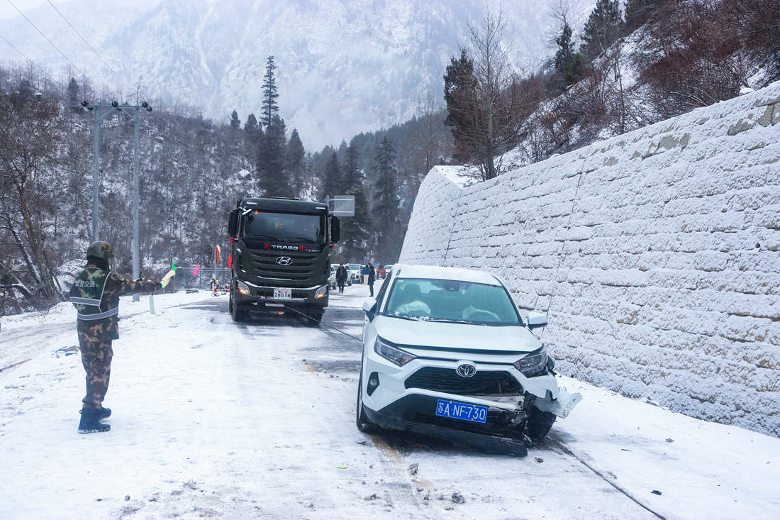 截止2月6日12時(shí)30分,經(jīng)過(guò)武警官兵連續(xù)4天的艱苦戰(zhàn)斗,因降雪受阻的川藏線(xiàn)和新藏線(xiàn)已恢復(fù)道路通行,受阻滯留的車(chē)輛人員,在武警官兵的指揮下全部安全順利通過(guò)。目前,武警官兵還在持續(xù)對(duì)部分背陰結(jié)冰嚴(yán)重路段進(jìn)行破冰處理。