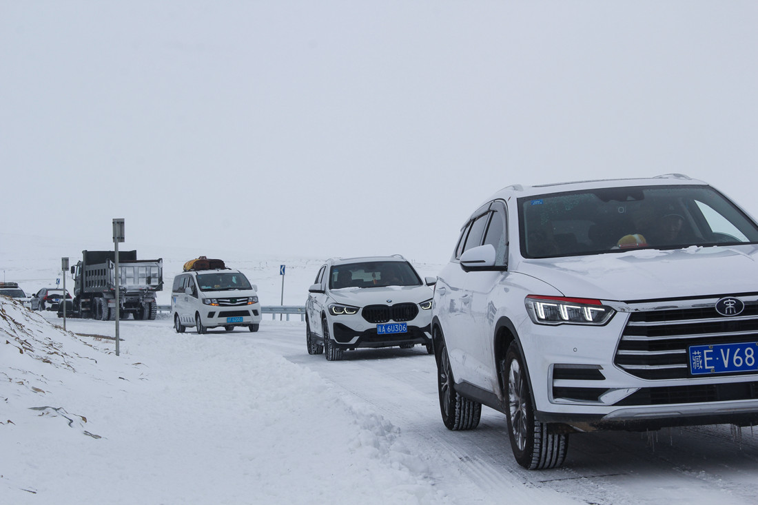 圖為交通恢復(fù)通行后受阻滯留車(chē)輛順利通行。