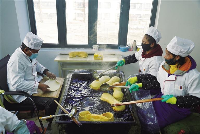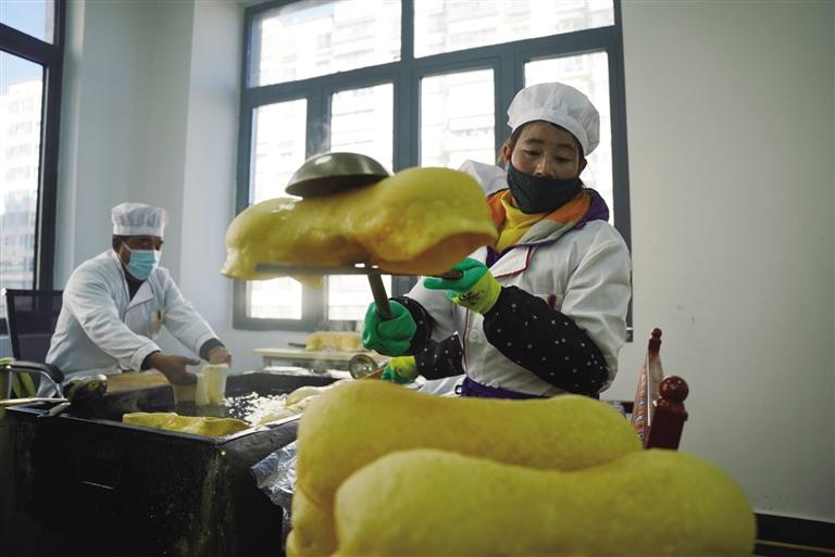 為了保證“德卡”與“卡賽”的品質(zhì),恩惠苑社區(qū)還提前聯(lián)系拉薩市墨竹工卡縣訂購面粉與食用油,確保原材料的安全與口感?!盀榱嗽黾愉N量,我們提前對(duì)接了一些社區(qū)居委會(huì)和商戶,并低價(jià)對(duì)內(nèi)銷售,讓我們社區(qū)的搬遷群眾也能夠低價(jià)購買到年貨?!贝稳拾椭檎f。