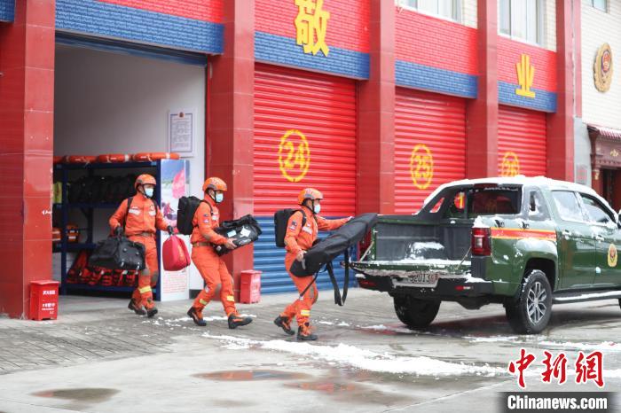 圖為消防員集結(jié)出動。索朗旺久 攝