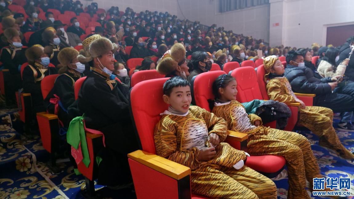 扎西曲登社區(qū)首屆藏歷新年晚會上,社區(qū)群眾在觀看節(jié)目(2月26日攝)。新華網(wǎng) 殷小燕攝