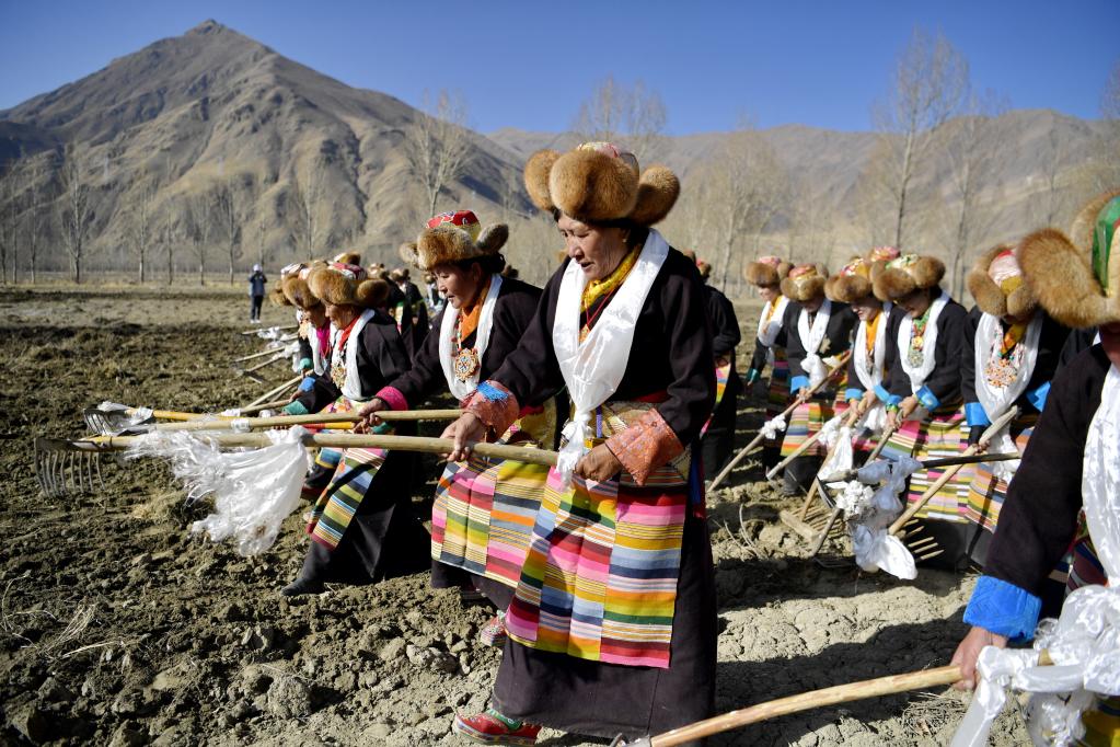 山南市乃東區(qū)門中崗社區(qū)春耕儀式現(xiàn)場(2022年3月16日攝)。新華社記者張汝鋒 攝