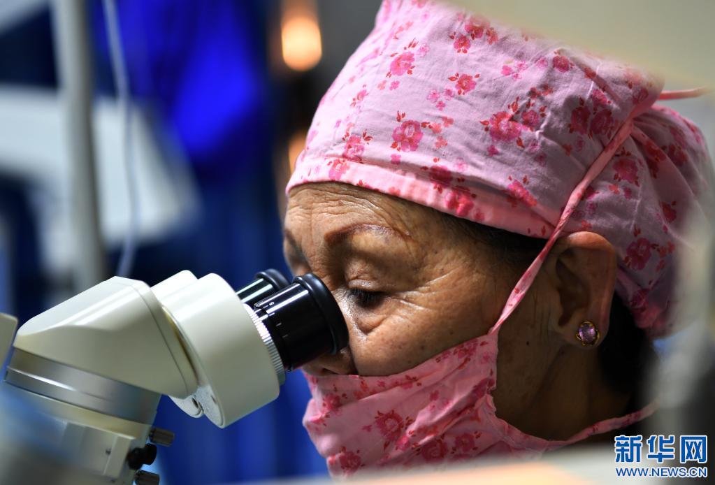 3月24日,藏族眼科專家卓嘎給患者實(shí)施復(fù)明手術(shù)。新華社記者 覺果 攝