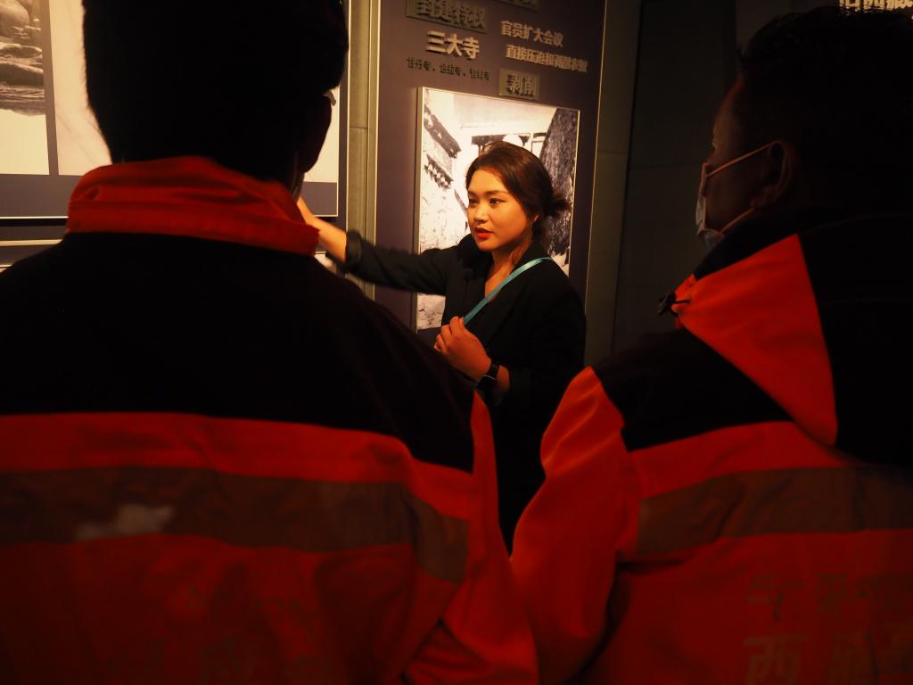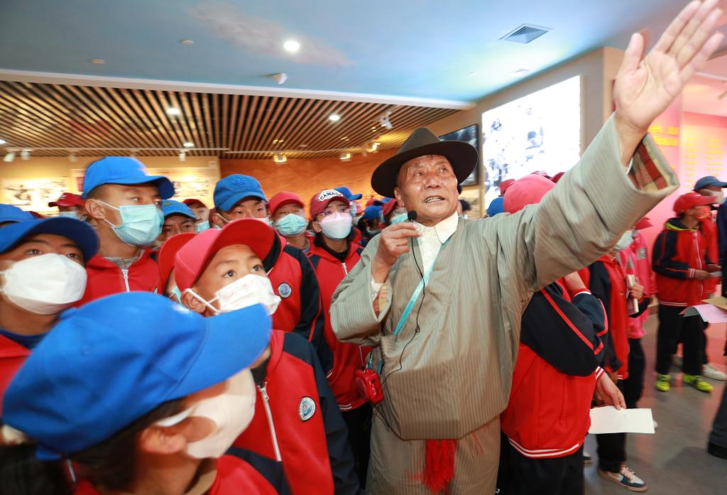 普次仁正在給參觀的學生進行解說(2022年3月28日攝)。(受訪者供圖)