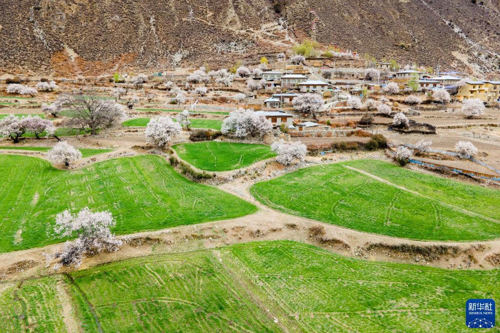 這是在那曲市嘉黎縣尼屋鄉(xiāng)拍攝的桃花(無人機(jī)照片,3月31日攝)。新華社記者 周荻瀟 攝