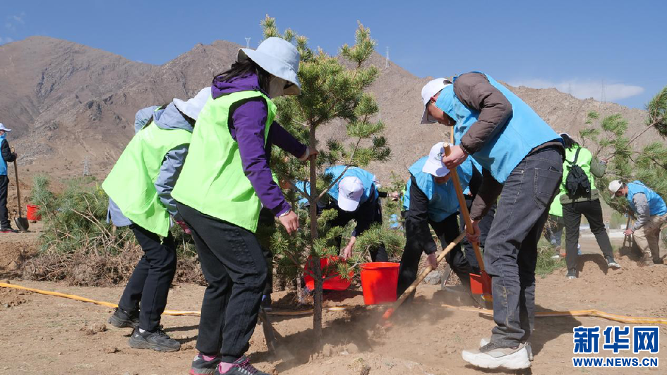 圖為植樹(shù)活動(dòng)現(xiàn)場(chǎng)(4月16日攝)。新華網(wǎng)發(fā) 貢桑央吉(實(shí)習(xí)生)攝