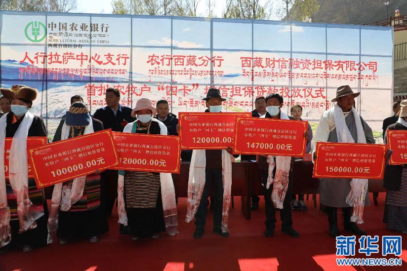 26日,由西藏財信融資擔保有限公司與農(nóng)行西藏分行聯(lián)合推出的農(nóng)牧戶“四卡”增信擔保貸款首批發(fā)放儀式,在山南市洛扎縣洛扎鎮(zhèn)舉行。現(xiàn)場9名受益群眾代表獲“四卡”增信擔保貸款共計111萬元。