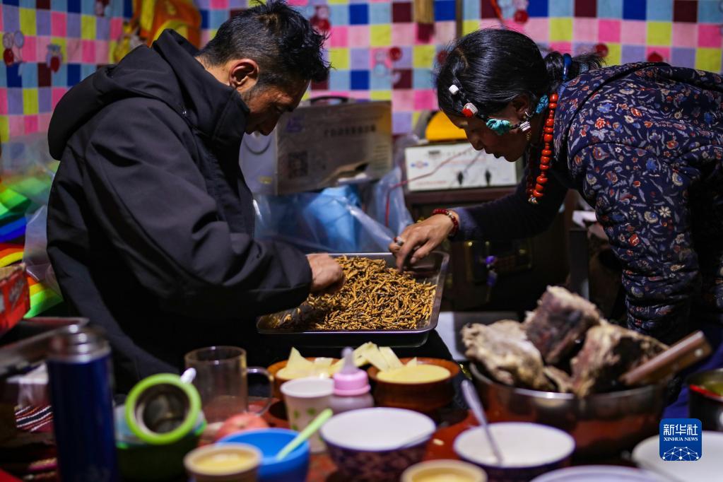 西藏那曲市比如縣良曲鄉(xiāng)然木塘村蟲草采集點(diǎn)的夜晚(5月25日攝)。新華社記者 姜帆 攝