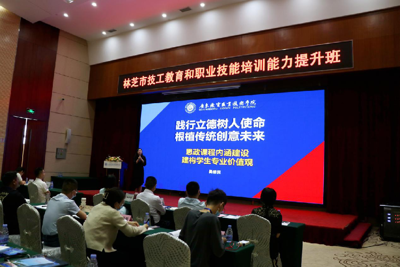 圖為廣東機電職業(yè)技術學院鄭偉光校長為林芝市技工教育和職業(yè)技能培訓能力提升班學員授課。