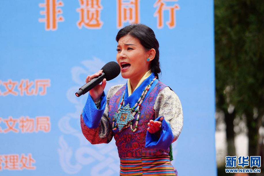 6月11日,拉薩朗瑪自治區(qū)級傳承人次仁央宗在演唱朗瑪《念波格?!贰P氯A網(wǎng) 旦增努布攝