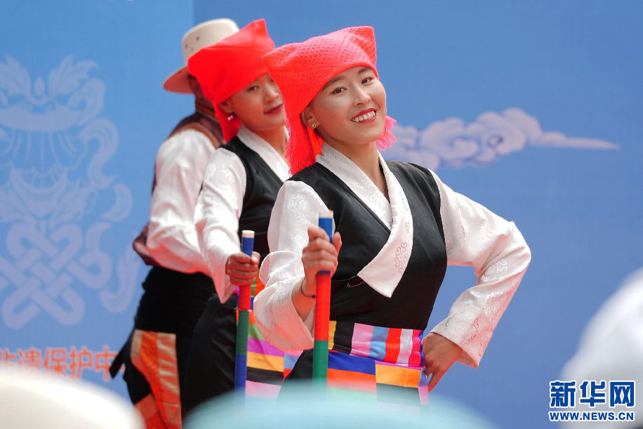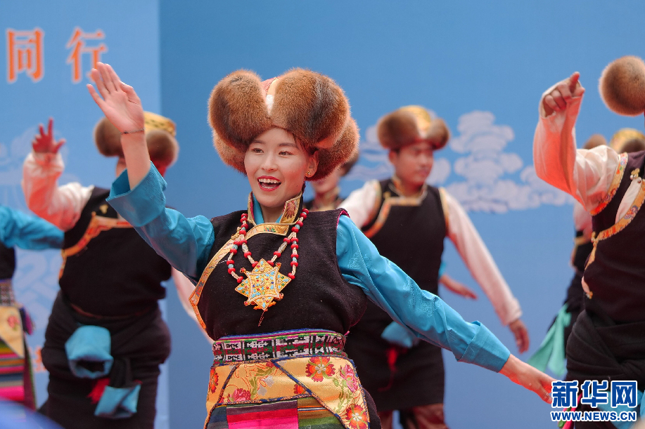 6月11日,西藏山南市貢嘎縣吉瓊村文藝演出隊在表演舞蹈《羊卓阿諧》。新華網(wǎng) 旦增努布攝