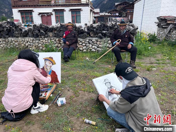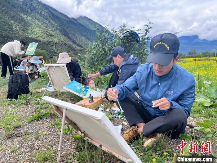 圖為西藏大學(xué)藝術(shù)學(xué)院的學(xué)生正在戶外寫生。共青團西藏自治區(qū)委員會供圖