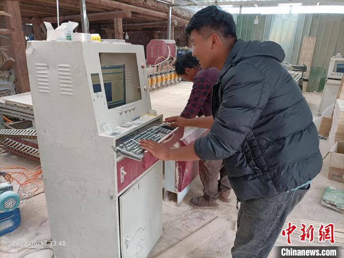 圖為加永四郎正在木材加工廠操作電腦雕刻機(jī)。洛松公秋 攝