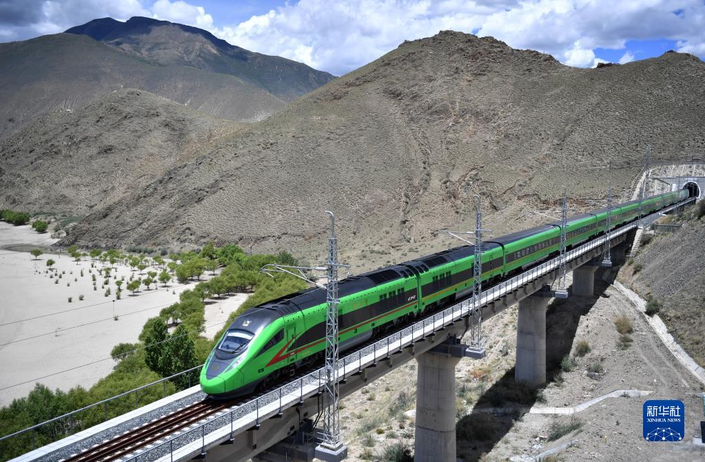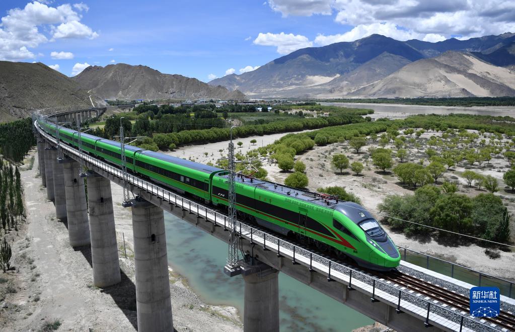 6月22日,復興號列車行駛在西藏山南境內。新華社記者 覺果 攝