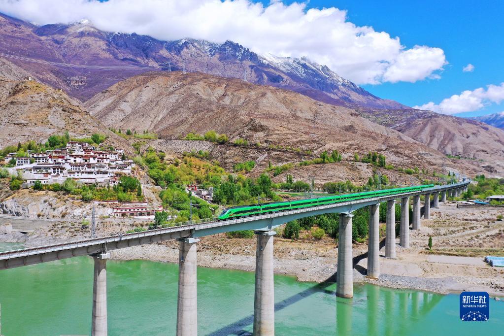 4月14日,復興號列車行駛在西藏朗縣境內。新華社記者 覺果 攝