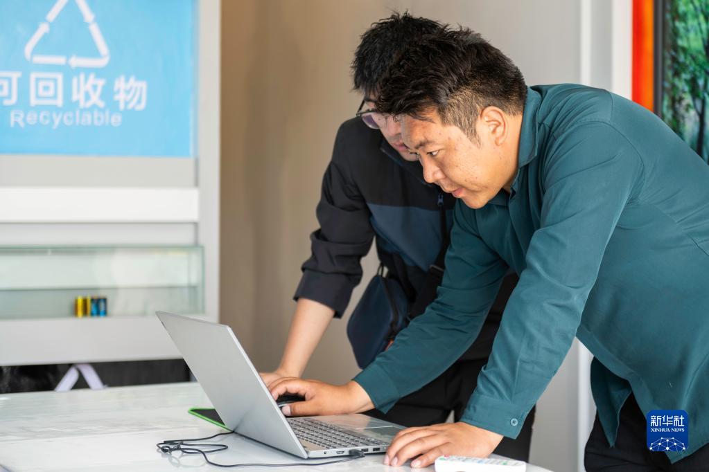 “格?;ㄩ_”大學生就業(yè)創(chuàng)業(yè)特訓營學員、西藏藏建科技股份有限公司職員次仁瓊達(左)在工作(2022年6月24日攝)。新華社記者 姜帆 攝