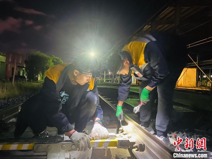 “‘天窗’命令已下達,大家?guī)Ш霉ぞ卟牧?,準備上道作業(yè)。”夜幕降臨,隨著作業(yè)負責人唐發(fā)元一聲令下,中國鐵路青藏集團有限公司拉薩基礎設施段信號集中修隊16名職工迅速上道,夜色下一行工人帶著工具,向拉林鐵路山南站東岔區(qū)走去。