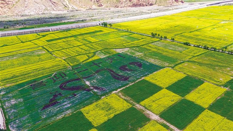 墨竹工卡縣農(nóng)業(yè)農(nóng)村局相關(guān)負責(zé)人告訴記者,這次的創(chuàng)意油菜花田和往年相比大不相同,為了迎接黨的二十大勝利召開,他們?nèi)α?00畝地人工種植了專門引進的四種彩色油菜花歷時兩個多月它們開花啦!看出這是什么圖案了嗎?現(xiàn)在記者給你揭曉(最上面是喜迎二十大字,字下中間是哈達、左邊是代表松贊干布和文成公主,右邊是愛心)。怎么樣,大家看出來了嗎?現(xiàn)在扎西崗村的創(chuàng)意油菜花都開了,從現(xiàn)在開始到接下來的半個月都是賞花期,一起去打卡墨竹工卡縣鄉(xiāng)村觀賞小油菜花的勝地吧,喜歡攝影的朋友更不能錯過哦!