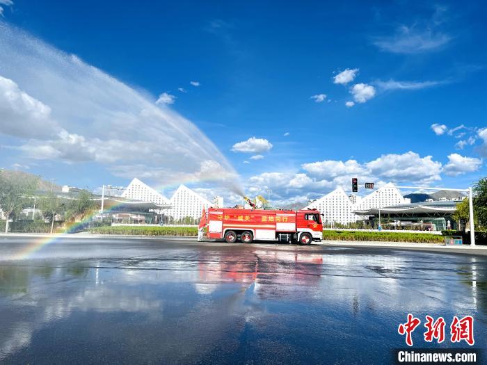 圖為拉薩消防指戰(zhàn)員在主城區(qū)進(jìn)行消殺?!±_市消防救援支隊(duì) 攝