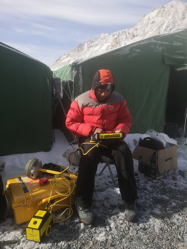 楊威在珠峰大本營檢查調(diào)試雷達設備
