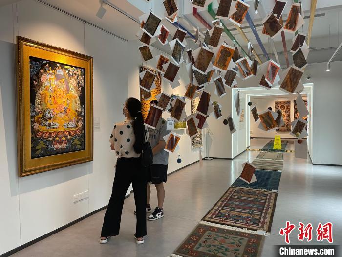 據介紹,藏毯通常厚達12毫米左右。在展覽上,觀眾們可觸摸甚至試坐藏毯,“零距離”感受其密實厚重。