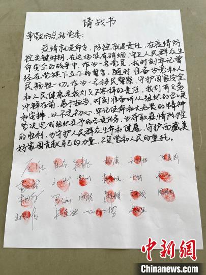 圖為執(zhí)法調(diào)查支隊(duì)民警寫(xiě)下請(qǐng)戰(zhàn)書(shū),簽名并按手印。陸鑫 攝