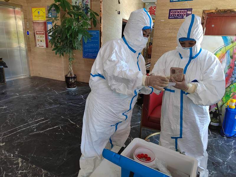 很快她們的申請有了回應(yīng),兩位老黨員變身“大白”,走上了核酸檢測崗位。從上午9點(diǎn)開始,上門為隔離人員進(jìn)行核酸采樣。一直到夜里11點(diǎn)才回家,卸下“大白”防護(hù)服時(shí)渾身已濕透。“能參與到疫情防控志愿服務(wù)中,做點(diǎn)力所能及的事兒,是我的義務(wù)。”旺前卓瑪說。