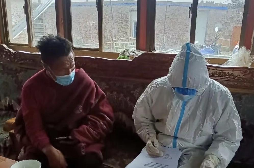 強(qiáng)聶村平均海拔4500米左右,由于當(dāng)?shù)厥羌兡羺^(qū),村民居住并不集中,這給全員核酸檢測工作帶來了很大的不便,而村里的醫(yī)務(wù)人員又十分緊缺。得知此消息后,次仁第一時(shí)間帶領(lǐng)駐村工作隊(duì)員配合村兩委和村里的醫(yī)務(wù)人員,義無反顧地在組織召喚的第一時(shí)間,便抵達(dá)“戰(zhàn)場”,用行動牢牢守住強(qiáng)聶村抗疫的第一道防線。