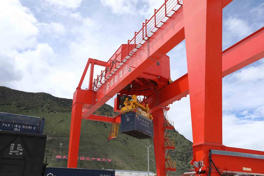林芝站貨場(chǎng)內(nèi),集裝箱門吊不停的作業(yè),一車車貨物不停的裝運(yùn),一個(gè)個(gè)忙碌的身影也清晰可見,他們用堅(jiān)守?fù)Q來拉林鐵路貨物的安全運(yùn)輸,也為林芝市物資保障貢獻(xiàn)了一份力量。