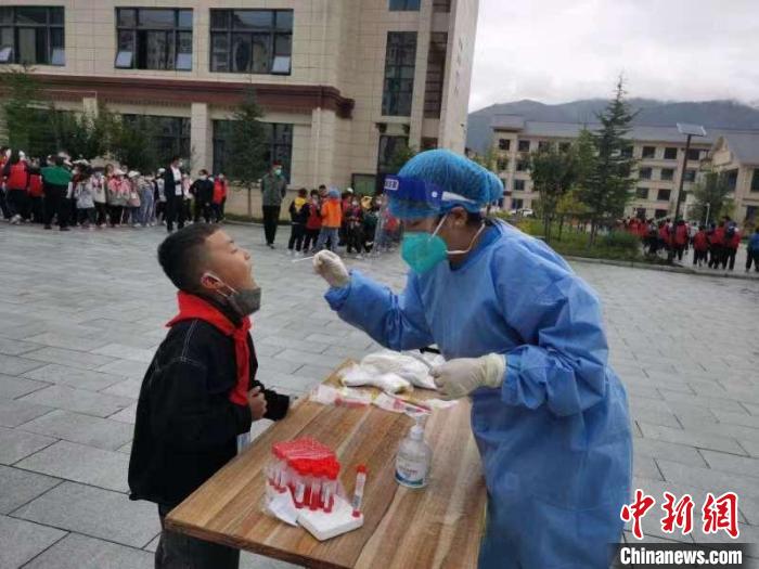 圖為林芝一小學,開學當天學生接受核酸檢測。林芝市教育局供圖