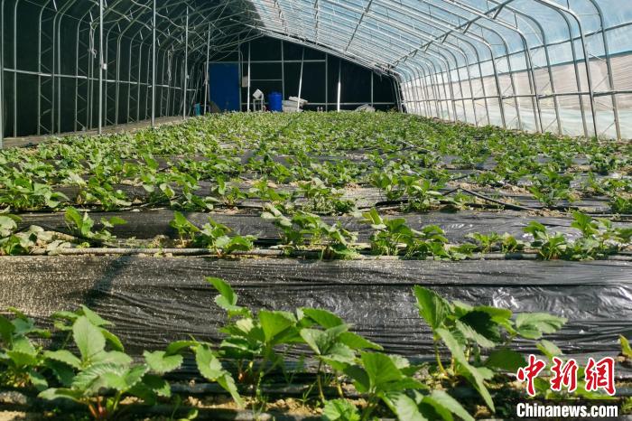 西藏康馬縣高原溫室大棚里的草莓,預(yù)計(jì)10月可采摘?!∈茉L者供圖