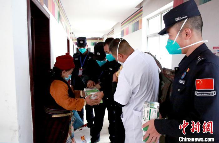 移民管理警察為駐地敬老院尼瑪頓珠老人解說(shuō)腸胃藥的服用說(shuō)明?!⌒じ毁F 攝