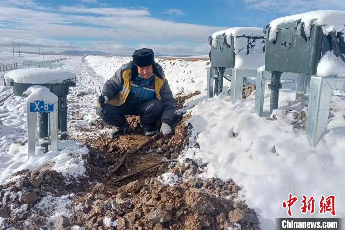 在唐古拉山地區(qū),空氣中的含氧量不足平原地區(qū)的50%,一個(gè)看似簡(jiǎn)單而又行云流水的檢查作業(yè),一套下來(lái),工作人員們氣喘吁吁?!敖裉焯乒爬奶鞖膺€不錯(cuò),風(fēng)也不大?!泵遍苌稀⒚济辖Y(jié)滿(mǎn)了霜花的梁海峰一邊檢查一邊說(shuō)。