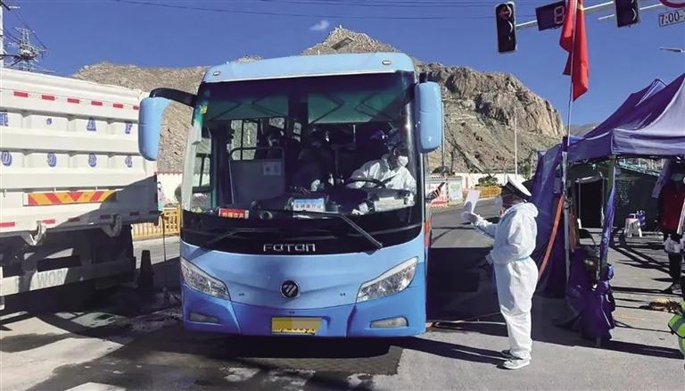 民警檢查過(guò)往車輛。圖由拉薩交警提供
