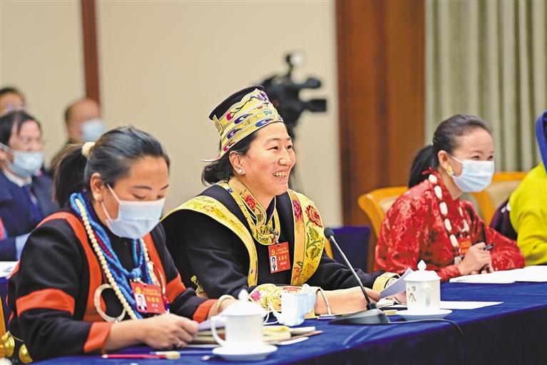 10月17日,西藏代表團(tuán)舉行分組會議,認(rèn)真討論黨的二十大報(bào)告。 圖為西洛卓瑪代表(中)在會上發(fā)言。 旦增西旦 攝