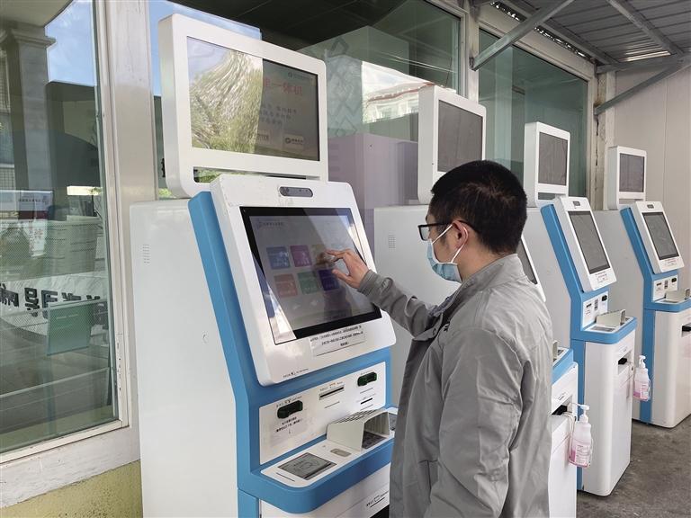 拉薩市民正在使用醫(yī)院內(nèi)的一體機掛號。記者 趙越 攝