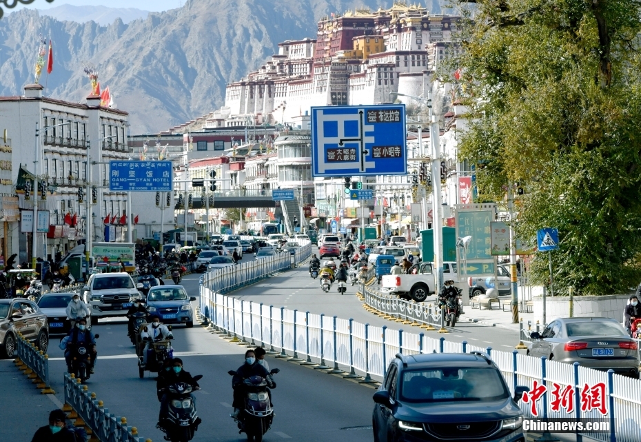 11月17日,拉薩市北京東路車流人流漸多。近日,在拉薩八廓街道、吉日街道、吉崩崗街道等主城區(qū)及市區(qū)主要路段,車流量、人流量逐步恢復(fù)。隨著拉薩市新冠肺炎疫情防控形勢持續(xù)向好,各行各業(yè)有序復(fù)工復(fù)產(chǎn),民眾生活逐步正常,街頭巷尾的“煙火氣”漸濃。 中新社記者 李林 攝
